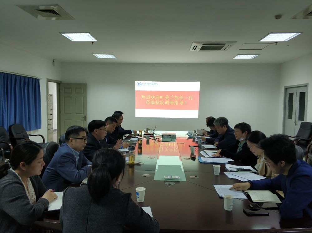 4月29日上午,叶美兰校长莅临新葡萄官网调研指导工作,教师工作部部长、人事处处长郭宇锋、招生就业处处长胡玉东、科研院副院长兼社科办主任胡纵宇、一流办常务副主任兼研究生院副院长马延文、校长办公室副主任汝一飞参加调研。学院全体院领导班子成员参加调研座谈。