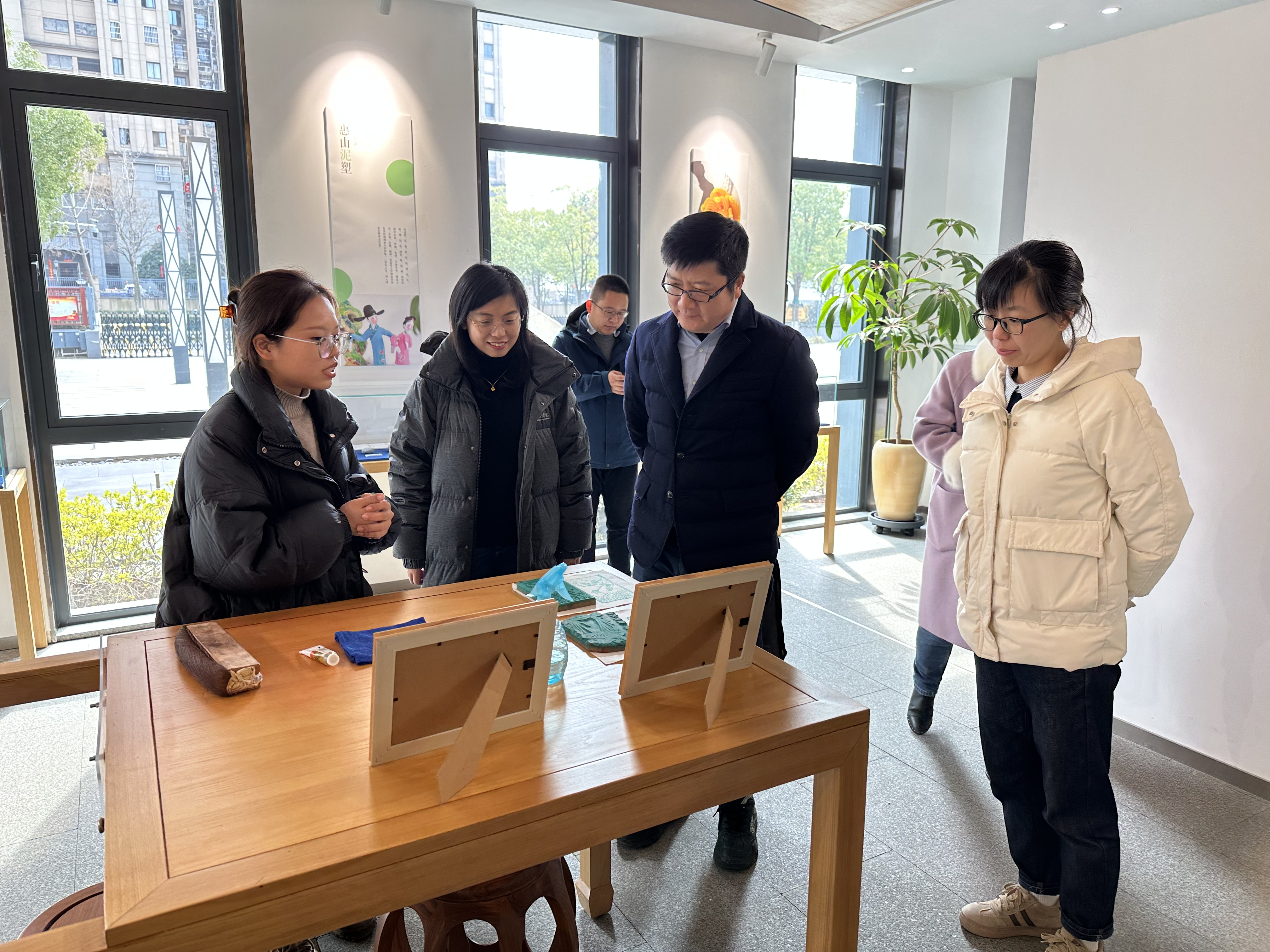 南京非物质文化遗产专业学院校长朱国美对新葡萄88805官网领导老师的到访表示了热烈欢迎,并带领大家参观了非遗文化工作坊。交流过程中,朱国美校长介绍了非遗学院的办学理念、师资队伍、品牌特色、平台建设、对外交流等情况,陈晓波书记介绍了新葡萄88805官网基本概况、人才培养、科学研究、学生创新创业、社会实践等情况,双方就实习基地建设、学生就业、“文化交流基地”共建等进行了深入交流探讨。